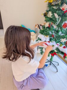 クリスマスツリーも設置され、ツリーの飾りつけをしたり、サンタさんの仮装をしたり…クリスマスを楽しみにしている子どもたちです。