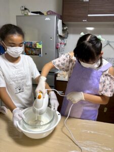 生クリームの泡立てや、トッピングの準備などを手分けして頑張りました。