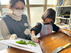 包丁を使う場面では、子ども用ナイフを使ったり、スタッフがサポートに入ったりして、安全に配慮しながら進めました😊
