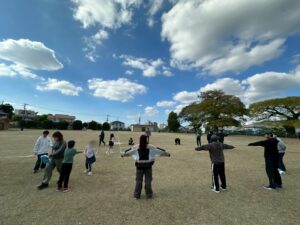 本日11/22(土)のイベントは体育館遊びとなっておりましたが、運動場遊びに変更になり篠栗町の小学校のグラウンドを借りて行いました!