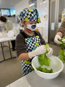 レタスを千切ったり、チーズやハムの型抜きをしたり…美味しそうな可愛いサラダが出来ました🎶