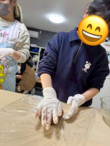 生地か出来たら冷蔵庫で休ませます!その間は工作をしたり、ボードゲームをしたりと自由時間です☆お昼ご飯を食べ終えるころにはすっかり生地も完成し、クッキーづくり再開です!