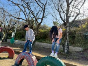 風が少しあり、バドミントンは厳しかったですが、グラウンドの遊具で遊んだり、大きなサッカーゴールでPK対決をしたりなど、いろいろ遊びをして過ごしました😌