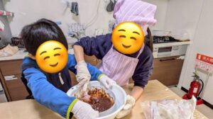 量がたくさんあったので混ぜるのに少し苦戦しましたが、持ち場の作業が終わった子どもたちが『手伝うよ!』と声をかけ合い、みんなで協力して作ることができました🥹✨️