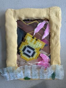 紙粘土やアイロンビーズでパーツを作ったり、紙粘土を貼り付けて立体的に仕上げたり、直接色を塗ったり、毛糸を巻いたりと、さまざまな工夫が見られました🎨✨