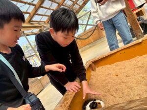 最初は目の前にいる動物たちに少し怖がっている子もいましたが、慣れていくと積極的に近付いてエサを与える事ができました!